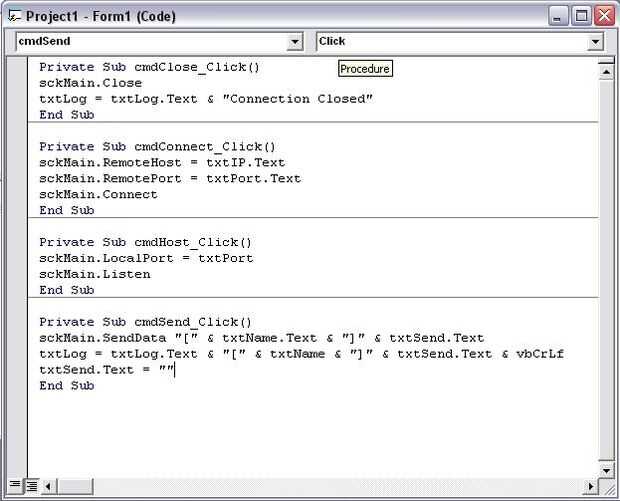 Haga doble clic en cmdSend y tipo