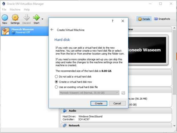 Ahora se le pedirá si desea crear un disco duro virtual. Seleccione "Crear un disco duro virtual ahora" y haz clic en "crear". Después de crear el disco duro, ahora podrás correr Ubuntu en Linux a través de su máquina Virtual.