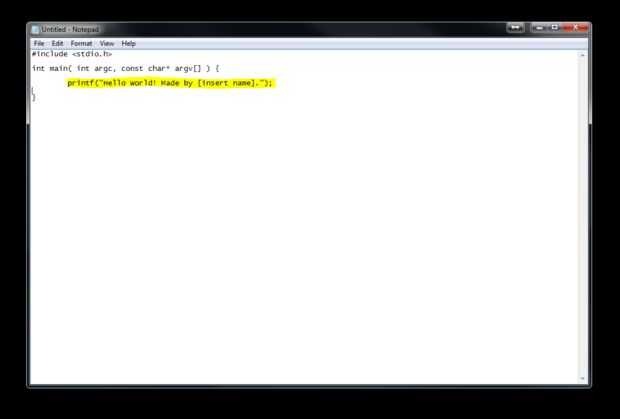 printf("Hello World! Made by [insert name]."); Figura 14