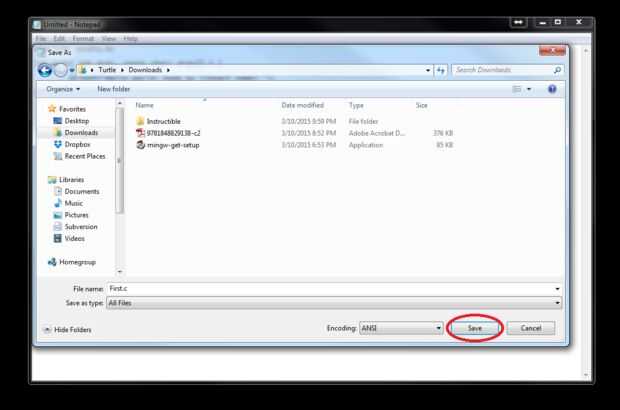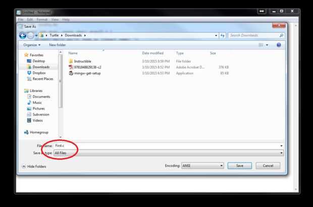 5. Guarde el archivo como un archivo .c