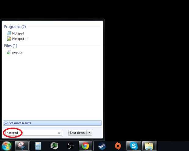 Haga clic en el botón de windows a continuación, escriba "notepad" como en la figura 10