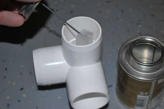 Tiempo para pegar! Ya que tienes seco ajuste el corte de la pipa y guarniciones, desarmar todo y se preparan para utilizar el cemento de PVC tomando todo fuera o hacerlo en su garaje con la puerta abierta. Cemento de PVC es apestoso y puede hacer que usted mareos si lo haces en un lugar sin ventilación. Y soplar es malo.