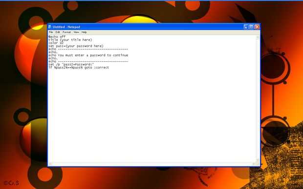 Después el comando color. Esto establece una variable llamada "pass" como lo que usted cambie "(tu contraseña)" con.