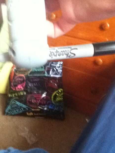 Pegar el sharpie que hay a través del orificio en la parte inferior