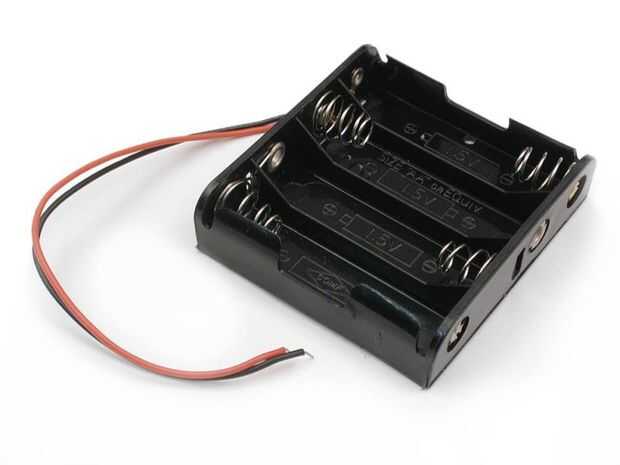 -Una batería de Radioshack espera 4 AA baterías. (total salida 6V)