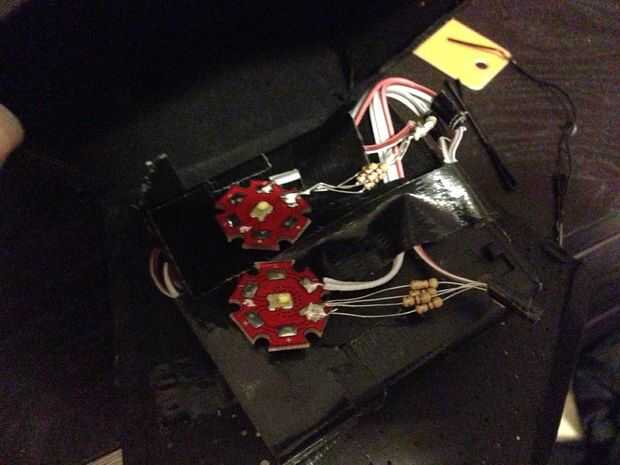 Soldar las resistencias a lo LED y cable hasta la batería.