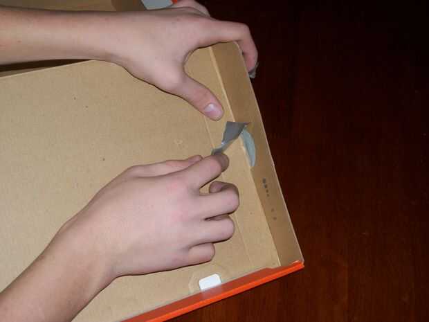 Lo primero que vas a hacer es tapa los orificios de la caja para evitar que cualquier luz dejando su caja o entrar en haciendo esto aumentará la calidad de su proyector. Cubrir todos los orificios en la parte exterior de la caja de conducto de cinta luego cubren en el interior por lo que ninguno de la cinta adhesiva está expuesto. Cubrir todos los lados así que no hay luz se filtra hacia fuera.