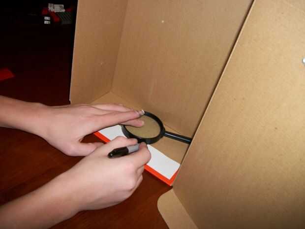 que usando mi ipod para sacar fotos así que no voy a tener mi iPod en el proyectorPaso 1: suplies necesita cinta, un cuchillo, un lápiz y una lupaPaso 2: cortar en su totalidad en el cuadro dePaso 3: la lupa de la caja de la cinta la lupa en el aguje