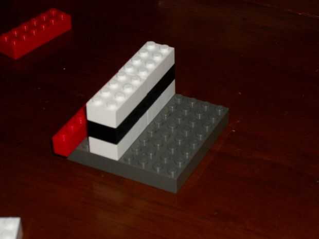 Desea que su iPod/iPhone sea lo más vertical posible. Así que vamos a hacer un stand de LEGOs si no tienes ningún LEGOs puede utilizar plastilina y pegar a la caja y descansar tu iPod/iPhone contra él. Para hacer el soporte de LEGOs tomar una plataforma (la usé es 6 x 6) y pegar un LEGO que es una alta y amplia y el tiempo suficiente para cruzar la plataforma. A continuación averiguar cuánto espacio su teléfono o iPod necesita y poner un 2 Lego amplia detrás de él pila los LEGOs lo suficientemente altos como para dar el soporte de iPod. Es el soporte.