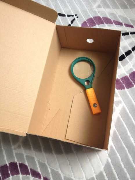 Encontrar una lupa o una lente y una caja.