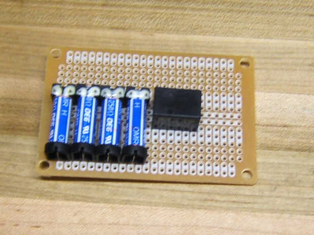 A continuación, suelde el relé SPDT (lo de caja) a la Junta como cerca de lo SPST relés como usted puede conseguir (ver imagen secundaria)