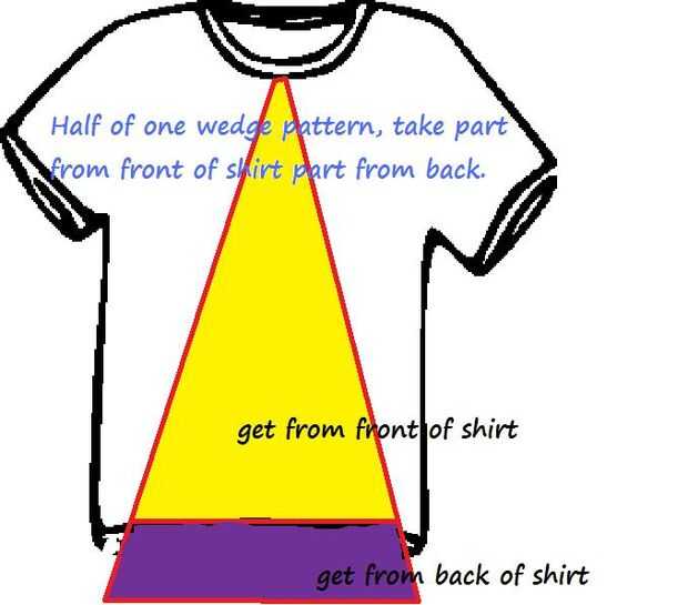 Cuando tengas tu "púrpura" y "amarillo" cuñas media recortar, coser a lo largo de la línea donde toque en la imagen de abajo con el lado "bueno" uno frente al otro. Se unen para formar una «cuña media» por fin!