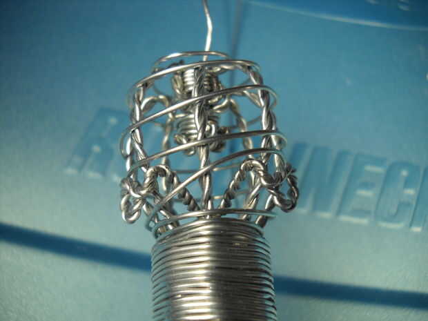 Hacer lo mismo con el otro cable que sobresale de la parte superior de la cabeza. Sólo que esta vez, abrigo de él alrededor en la dirección opuesta en la parte superior de los cables que acaba de envolver. Trate de mantener la separación similar a la anterior envoltura. Además, centrará su esfuerzo haciendo el "rostro" vea bien ya que es la porción visible así como la principal área de interés. Mina se veía un poco mejor antes de que me cayó en pleno proceso de pintura. Le sighez. * sollozando en mi Coca Cola Zero *