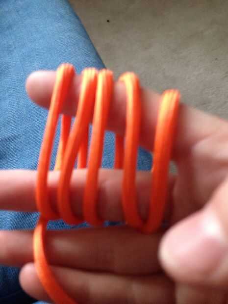 Primero Envuelva la paracord alrededor del índice y dedo medio. Envuélvalo alrededor de 4 a 5 veces. Asegúrese de dejar un espacio para el mármol.