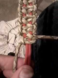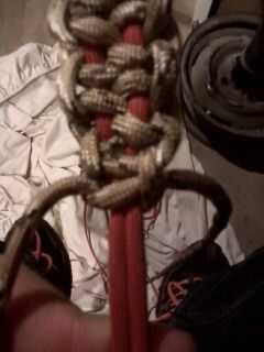 Para terminar el lazo, tome la derecha larga cuerda y tomar sobre ambas cuerdas cortas. Luego, tome la cuerda izquierda de largo, ponerlo delante de la cuerda larga derecha, entonces tomarlo detrás de ambas cuerdas cortas y ejecutarlo a través de la parte posteriora del lazo de la derecha de la cuerda larga. Entonces, hacer lo mismo, sólo comenzar con la izquierda de la cuerda larga esta vez:) Ser creativo cuando vaya a suspender el paracord en el otro bucle, sólo asegúrese de que esté seguro, asegúrese de que no se deshecha la primera vez que utilice!