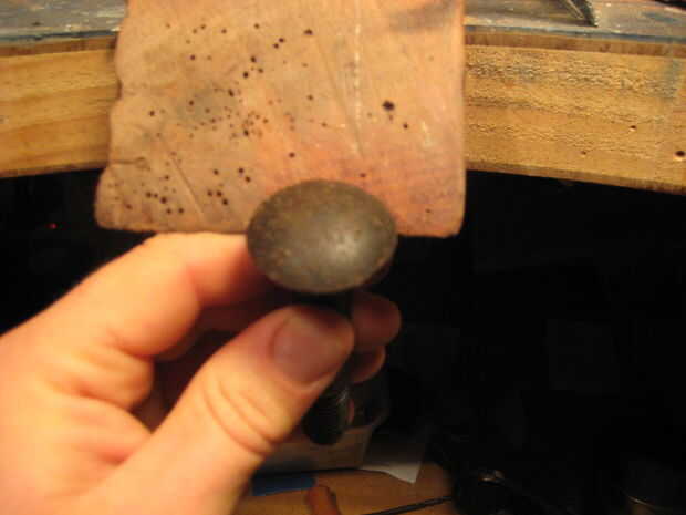 al considerar el acero debe tener en cuenta la curva de la cara. Esta cabeza del perno es de aprox. 28mm de ancho y 7mm de profundidad. que es apropiado para la curva de que deseo, puede que necesite buscar unos diferentes tamaños antes de llegar a lo que usted necesita. Si vas a utilizar la herramienta de acabado en un bloque dapping comercialmente hecho Compruebe que se ajuste a la cúpula! también algunos perno cabeza de carro no son 100% redondo, si el no hizo redondo puede mar del lado del bloque dapping.