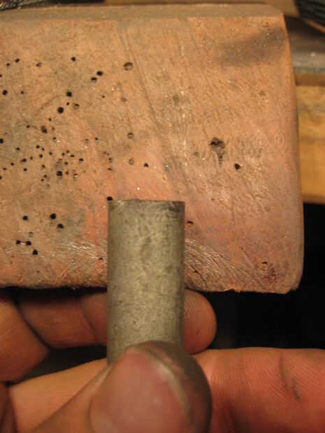 Redondo suavemente el extremo del muñón. Este es un paso importante. por redondeo al final, incluso por sólo unos pocos grados se crea una pequeña corona que esto ayuda a dirigir la fuerza del martillo sopla hacia abajo el golpe aunque el martillo no roza el golpe perfectamente plana.