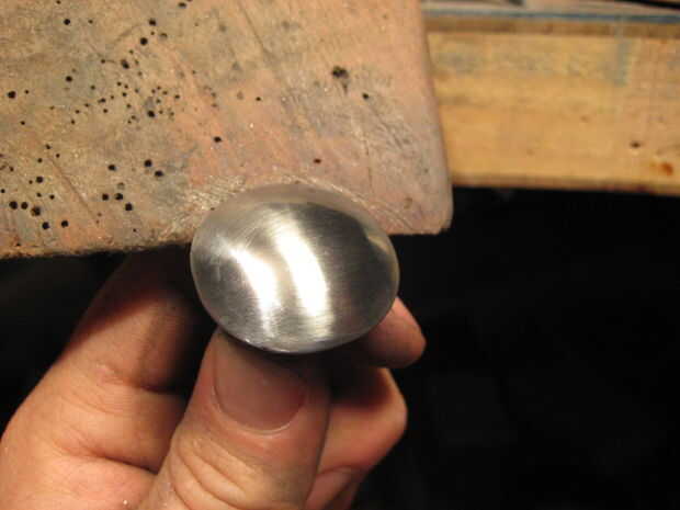 Para pulir usando una carga de motor pulidora rueda por tocar ligeramente el pulido compuesto a la rueca. Mantenga la cúpula entre 4 y 5 oc'lock de la rueda (en la posición no es la época) no 'escarbar' el domo de la rueda sino que utilizan una presión firme incluso a conseguir una sensación para la presión correcta rápidamente. Mover el domo para la cara recibe una incluso pulido (con metales más suaves es posible pulir un surco en la superficie-no no esta) Inspeccione su progreso con frecuencia.