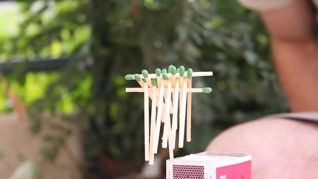 Para otro desafío, vea si usted puede balancear 15 fósforos como esta. Es mucho más difícil, pero una vez que balance son increíblemente estables así!