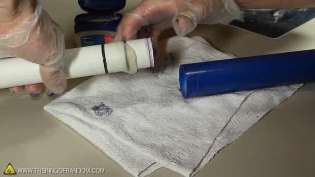 Para insertar el pistón, los anillos necesitan cierta lubricación, o la fricción en el interior las paredes de la tubería serán dañarlos. Yo usé vaselina, pero algunas personas han sugerido la vaselina va a comer los O-rings con el tiempo, y que algún tipo de grasa de silicona mejor.