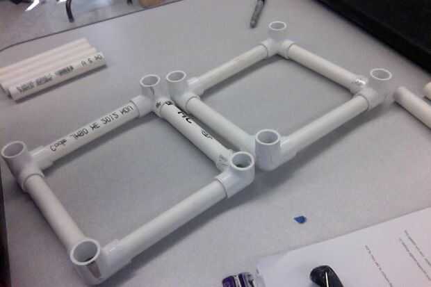 primero tome 4 tubos de 6 pulgadas y 4 tomas lateral de 90 grados luego conectar dos piezas de tubo en los lados de cada toma (no el top uno) Ahora debería tener una caja de