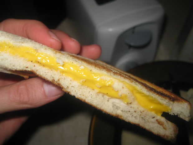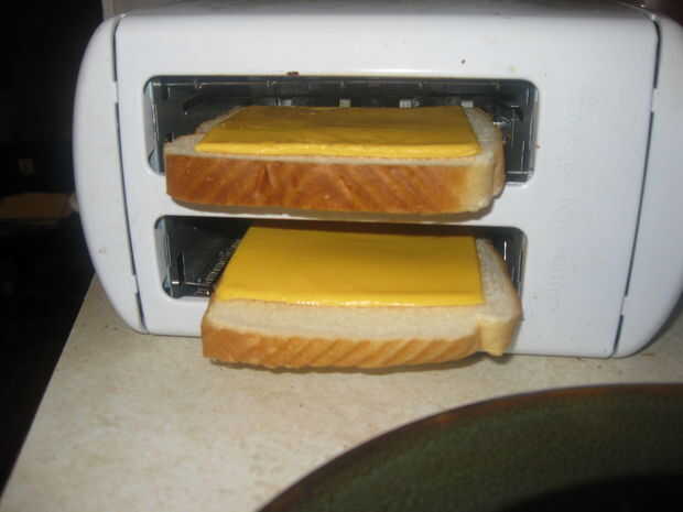 Vi esta idea aseada en este sitio web después de experimentar con la cocina sandwiches en una tostadora ranura regular. Esta es una de las maneras más fáciles para hacer un queso parrilla, sin parrilla o microondas.