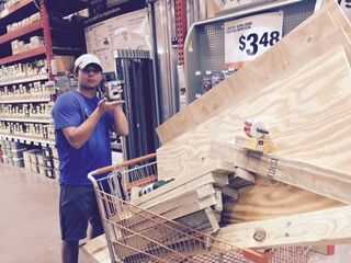 Fui a Home Depot a mis fuentes. Para hacer este estante de palo se tiene que: 4 2x6s, 4 2x4s, una caja de tornillos para madera, cenadores de metal agujero 8, dormilón de un agujero de 3 pulgadas, una taladradora y 4 latas de pintura en aerosol. Me cuesta aproximadamente 150 dólares. Tengo 1 de 2x4s cortado en mitad. Tengo el resto de 2x4s cortado en cuartos. También uno de los 2x6s corte por la mitad para usar como lados.