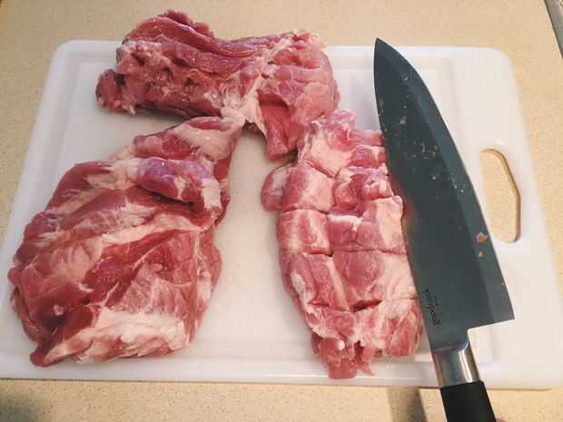 1. Limpiar la carne del hombro de cerdo con agua.