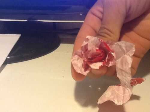 se necesita candy wrappers. Envolturas de Starburst son el tamaño perfecto, igual que ahora y más tardías envolturas. Necesita mucho si usted quiere hacer una larga cadena.Paso 1: Doblar la envoltura por la mitadPaso 2: Doblar por la mitad otra vezPa