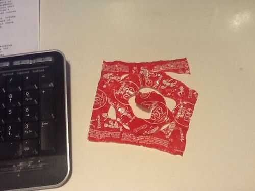 usted puede hacer fácilmente una cadena de contenedores starburst o goma de mascar. Estoy usando envolturas starburst desde hoy comí algunos, pero goma envolturas trabajo igual de bien.Acabo de hacer una cadena de un paquete de destellos, pero si tie