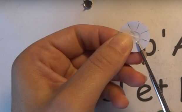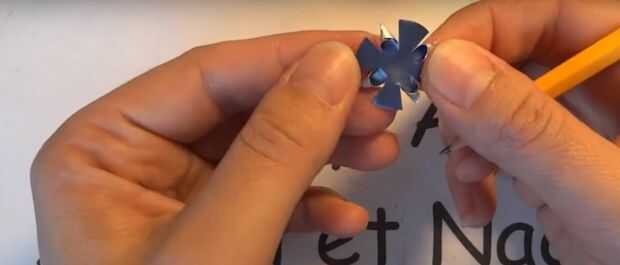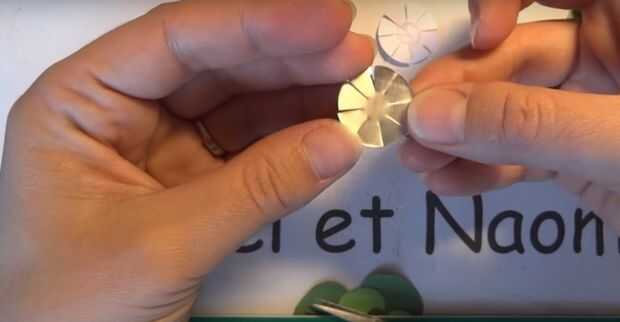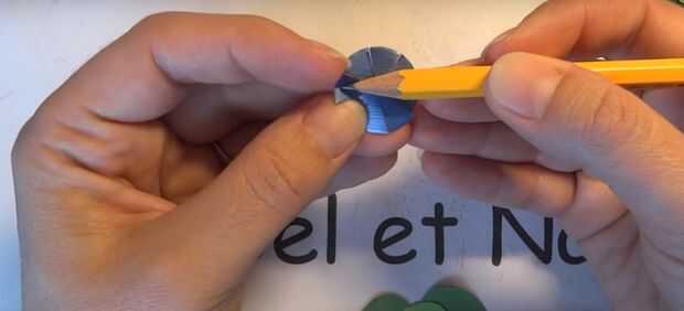Utilice el círculo de papel para cortar el círculo de pod de café. Dejar el centro sin cortar. Ahora doblar uno de cada dos de las piezas cortadas alrededor de la punta de un lápiz. Ahora que esta al lado.