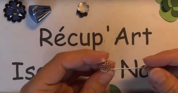 Utilice un perforador de flor pequeña para cortar café pod y tubo interno de la flor. Perforar la segunda cápsula de café preparado y añadirle broche e. Ahora perforar la flor de pod de café y cortar los pétalos un poco.