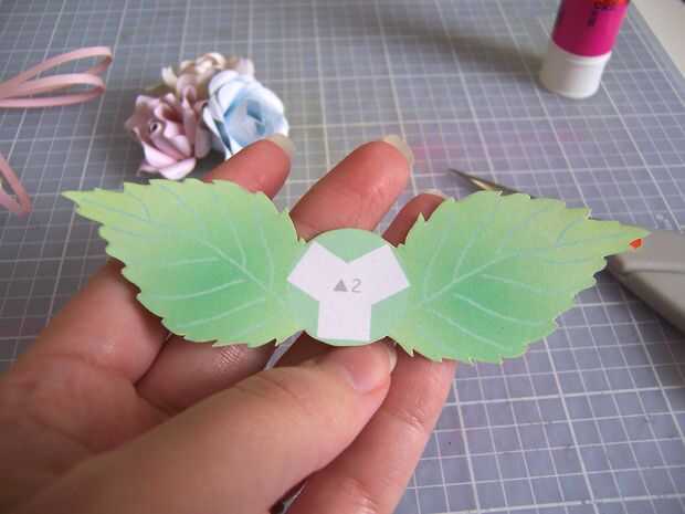 Cortar el rectángulo más grande que rodea las hojas. Doblar por la mitad y pégala al igual que las piezas de pétalo, a continuación, cortar las hojas. Adherir las hojas a la base. Puede dar forma a las hojas un poco doblándolas hacia atrás, si lo desea.