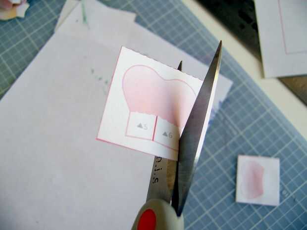 Cortar el pétalo de forma de cada pieza. También corte una hendidura a lo largo de la línea roja que separa las fichas numeradas.
