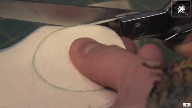 Una vez que han fusionado sus Entretelas doblar la tela por la mitad y dibuja un círculo de aproximadamente 2 pulgadas de diámetro.