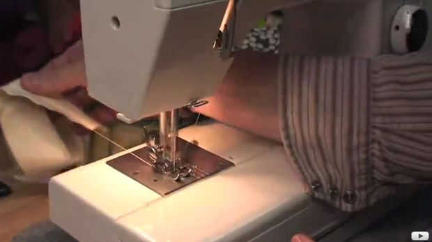 Regresar a la máquina de coser, usted establece una longitud de puntadas largas y sueltas y comenzar a coser el lado abierto. Asegúrese de no bloquear su puntada cuando comience. Una vez se llega a la licencia de la parte inferior usted mismo algunos hilos de cola larga.