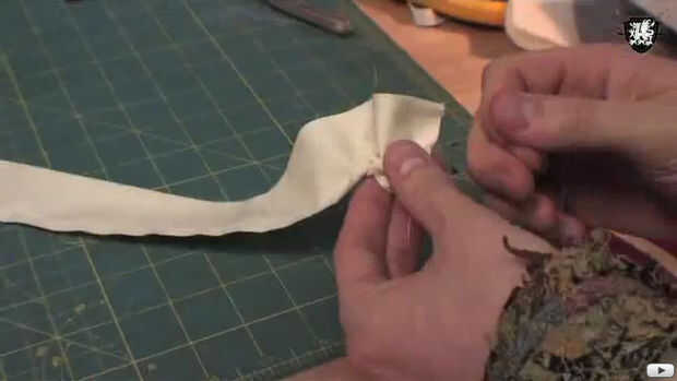 Una vez cosido, tomar el hilo de la canilla y comienzan a rouche su rectángulo con cuidado tirando y empujando a crujir encima de tu tela.