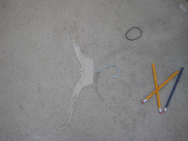 este Instructable le mostrará cómo hacer un lazo rápido, fácil, con lápices para munición. Se necesita: -Un colgador de plástico como el de la imagen -A banda de goma -Lápices para la munición