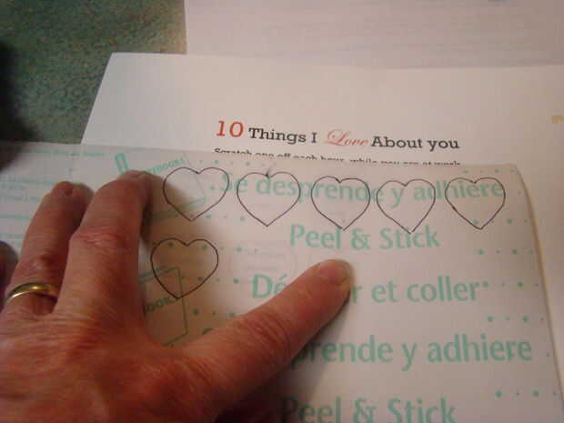 Luego trazó los corazones sobre el papel la parte trasera del vinilo.