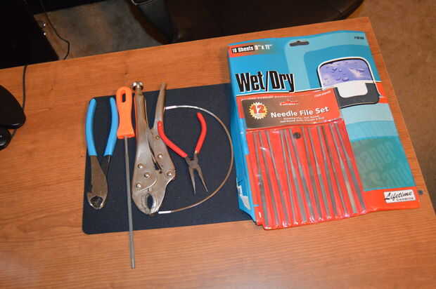 6.) papel de lija húmedo / seco. Conseguir la materia negra, carburo de silicio. Grano surtido pack de carga puerto cuesta muy poco.