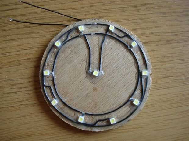 El poder los cables pasan a través de la placa trasera a través de un agujero pequeño, esto me permitirá alimentar el LED cuando se encajonan en el plástico.