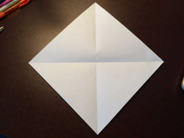 Pliegue de este redil así. Cuando se despliegan el papel ahora, habrá pliegues perpendiculares.