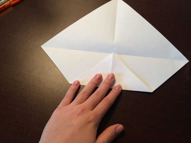 A partir de la parte inferior, doblar la punta en el centro (donde se cruzan los pliegues que creó)