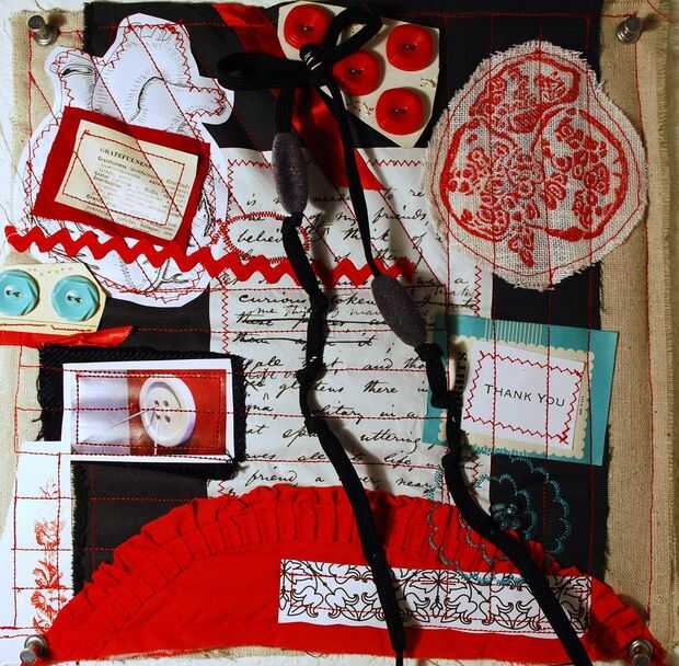 Si te gusta coser, lo más probable es hayas acumulado montones de retazos de tela y mercería. ¿Habrán algunas misceláneas de scrapbooking escondido en el armario? Tal vez incluso tener una caja o dos debajo de la cama llena de efímero de sus viajes. Vamos a desempolvar esas fuentes y conseguir que en la pared para disfrutar!