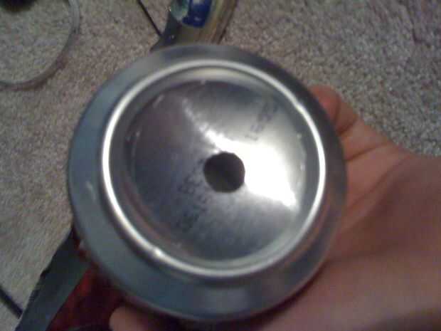 Usar la broca para perforar un agujero en el fondo de ambas latas.