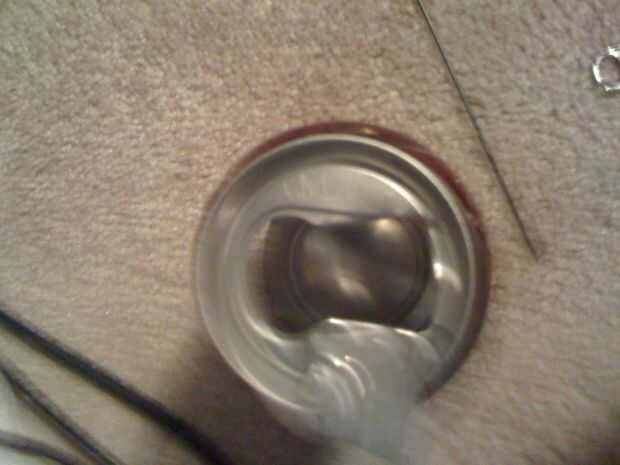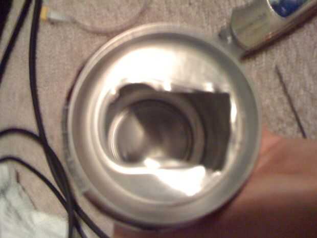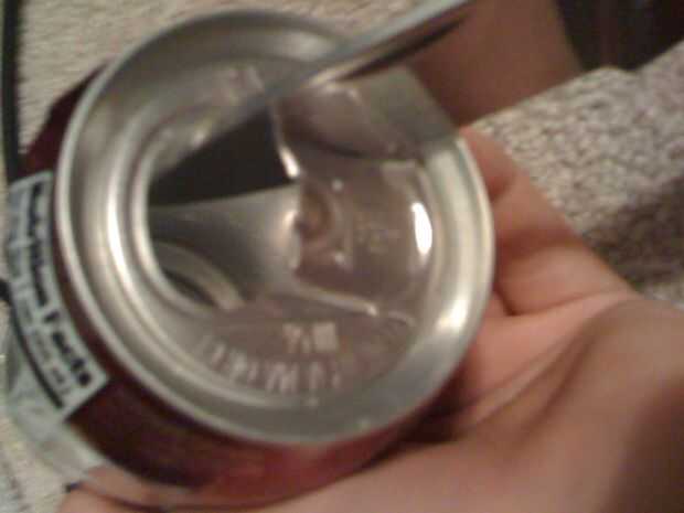 Tomar ahora se puede (se trata de su espalda puede. Sólo hacer esto que se puede). y su cuchillo del palillo en el agujero de beber y en la extrema izquierda y extrema derecha hacer un corte hasta el fondo de la llanta. Después de hacer esto Retire la aleta de la misma manera que los demás.