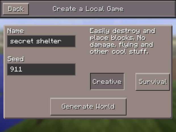 Haga clic en reproducir y en la parte superior, haga clic en "Nuevo" Thn, poner nombre y recuerdo, semilla "911" porque habrá una "Cueva de arena" para hacer nuestro refugio!