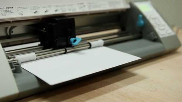 Después del ajuste, podríamos cortar un registro casi en la misma forma que la impresión en un papel con una impresora de oficina. En ambas máquinas, tarda aproximadamente 3 a 5 min en el caso de un surco bloqueado. Con cortador de papel, también debe cortar el papel con tijeras y hacer un agujero con un cutter (figura).