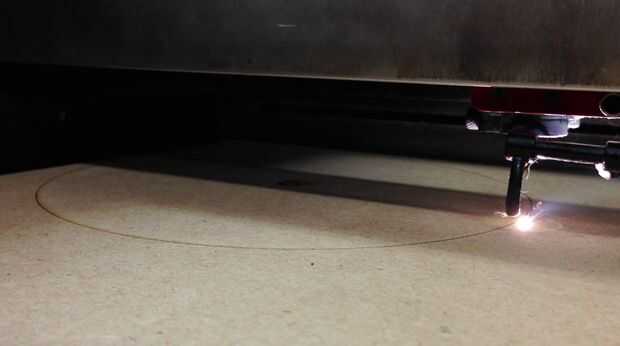 * Cortador del laser es un dispositivo para grabar o cortar imágenes sobre un material con un rayo láser. Para comparar con ella a las impresoras de oficina, en lugar de imprimir la imagen substancial de tinta o toner, que podría producir la imagen sin contacto físico. Debido a su principio para quemar a una superficie de material, es difícil de tratar algunos materiales como el vinilo que producir gas venenoso o metales con superficie reflectante. Al lado de eso, podría ser utilizado con materiales diversos como papel, madera, acrílico y cuero. Normalmente, un cortador láser ofrece dos modos: raster, vectoriales y de. En la trama, el láser explora horizontalmente (es decir, quemar) la superficie basada en un mapa de bits o datos de pintado. En vector, los contornos de haz de láser en la superficie para hacer una línea continua para grabado y corte basan en los datos de un vector. En nuestro método, utiliza principalmente el vector para grabar la forma de onda (figura).