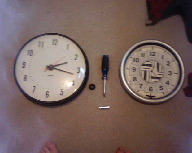 Se necesita: 1) el reloj roto (duh) 2) un antiguo reloj o un motor (usted puede conseguir uno en Michaels por $8.99) 3) un destornillador 4) una batería de 5) masilla pared (si quieres el originales manos a la obra)